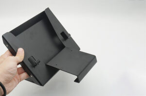 This is an electronic device stand, primarily used to mount tablets, industrial display screens, and other equipment. It achieves Angle adjustment and stable support of the equipment through an inclined structure and fixed clips. It is commonly seen in industrial control, self-service terminals, office scenarios, and other fields. Its production process mainly includes the following links: