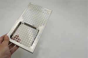 ② Stamping forming: The frame is stamped to form a uniform array of circular holes (for fixing the cryotubes), and at the same time, the frame structure is stamped out to ensure overall stability.
